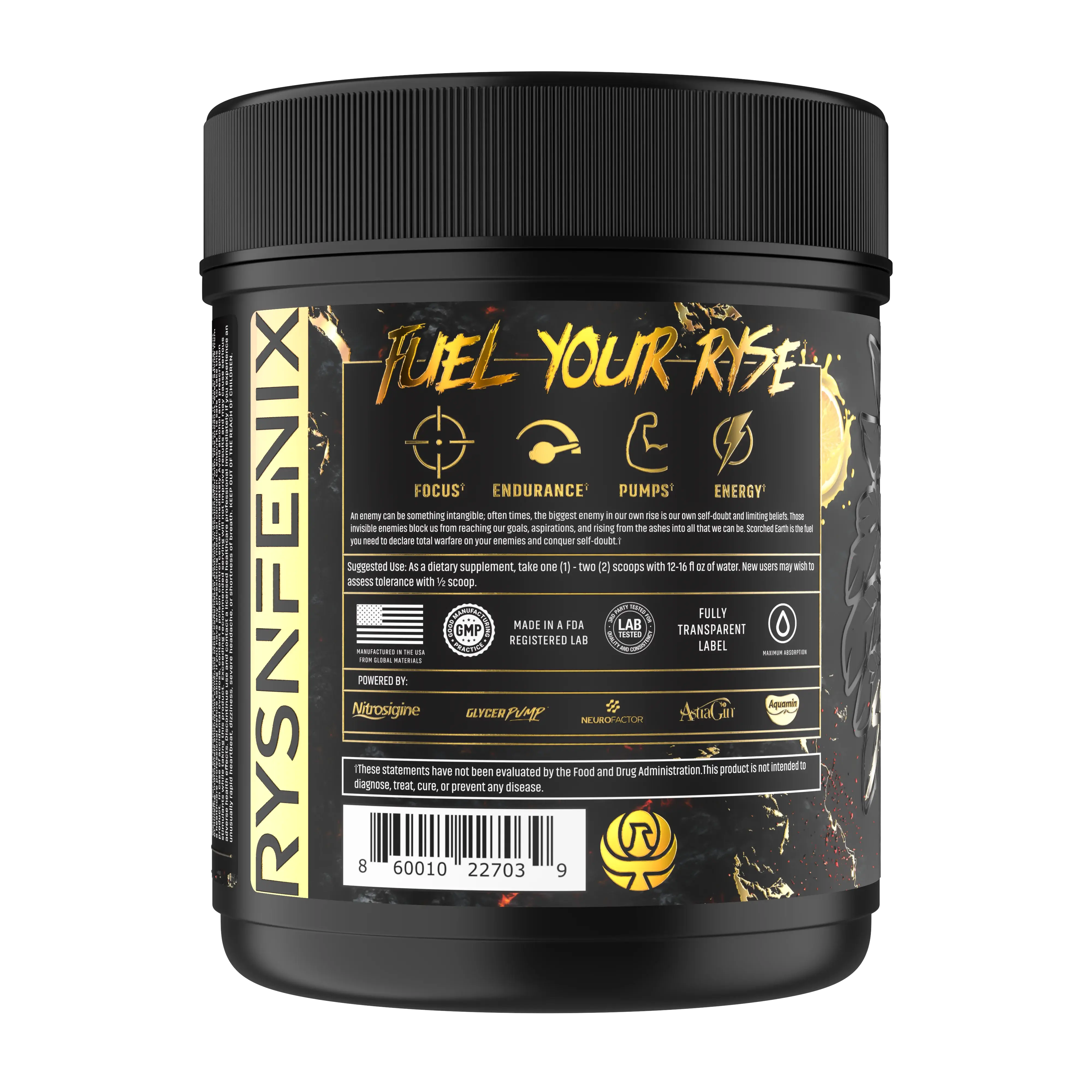 We at RysnFenix decided to name this Pre-workout Scorched Earth because an enemy can be something intangible; often times, the biggest enemy in our own rise is our own self-doubt and limiting beliefs. Those invisible enemies block us from reaching our goals, aspirations, and rising from the ashes into all that we can be. We want you to use this amazing pre-workout as a fuel to declare total warfare on your enemies with a Scorched Earth approach.