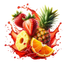 The pineapple brings a tropical sweetness that is both bold and inviting, while the strawberry adds a delightful burst of fruity freshness. The orange contributes a citrusy zest, rounding out the flavor profile with its lively tang. Together, these flavors create a tropical punch that is the perfect balance of sweet and tangy.